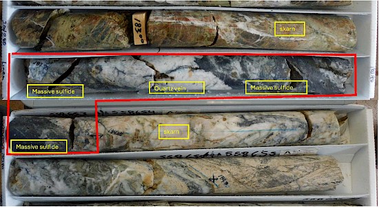 - 7.6 m of 461 g/t AgEq or 266 g/t Ag, 0.27 g/t Au, 0.57% Cu, 1.60% Pb, 3.17% Zn, incl. 2.9 m of 1,204 g/t AgEq or 636 g/t Ag, 1.36% Cu, 3.9% Pb, 7.17% Zn (Hole 20-044)