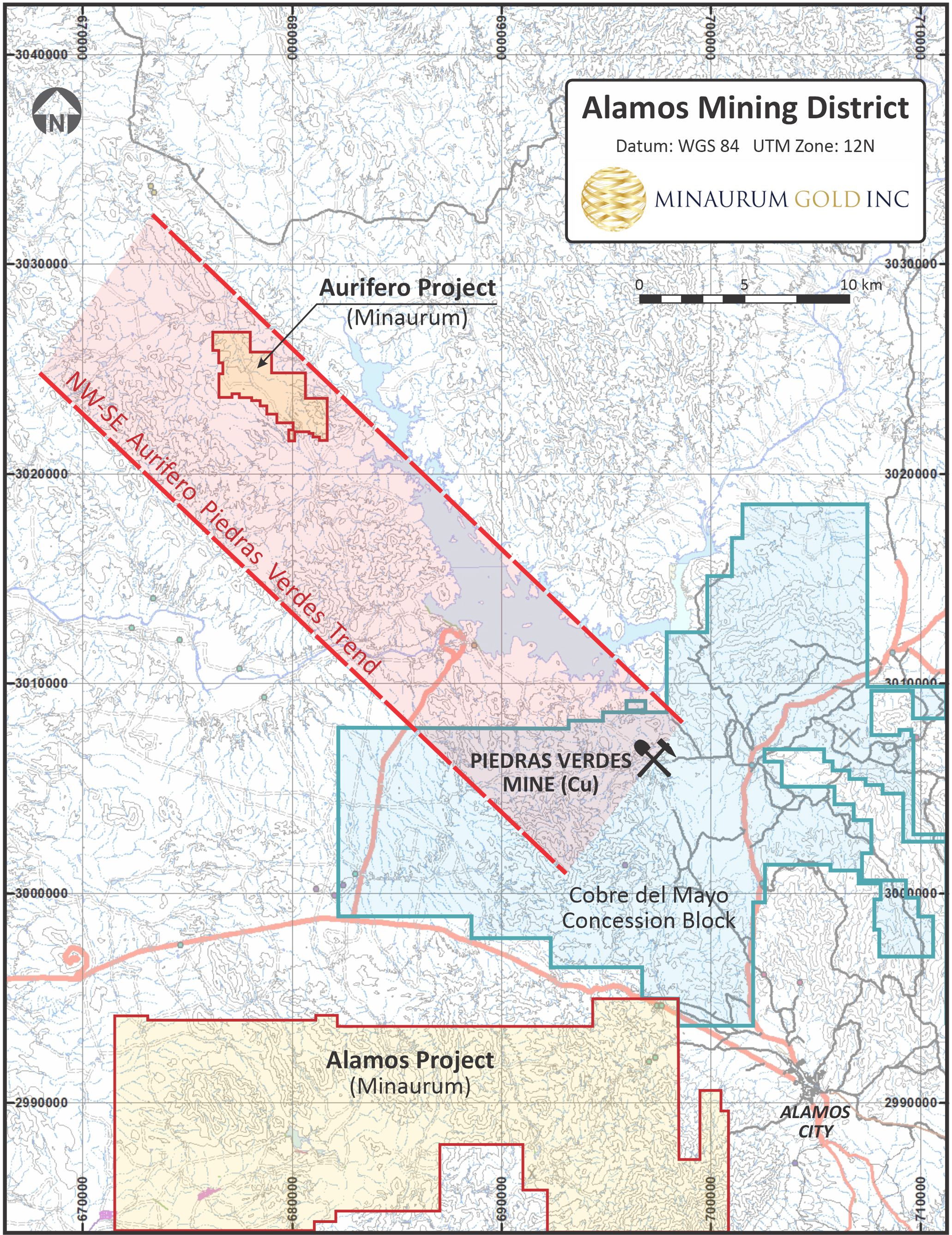 The project is 35 km northwest of the Alamos silver project, and 15 km northwest of Cobre Del Mayo's Piedras Verdes copper mine. The total size of the project is 1,229 hectares.